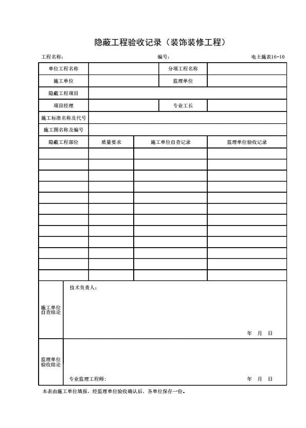表格名称:电土施表16-10 隐蔽工程验收记录(装饰装修工程)