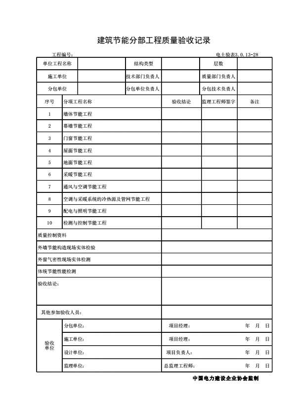表格名称:电土验表3.0.13-28 建筑节能分部工程质量验收记录