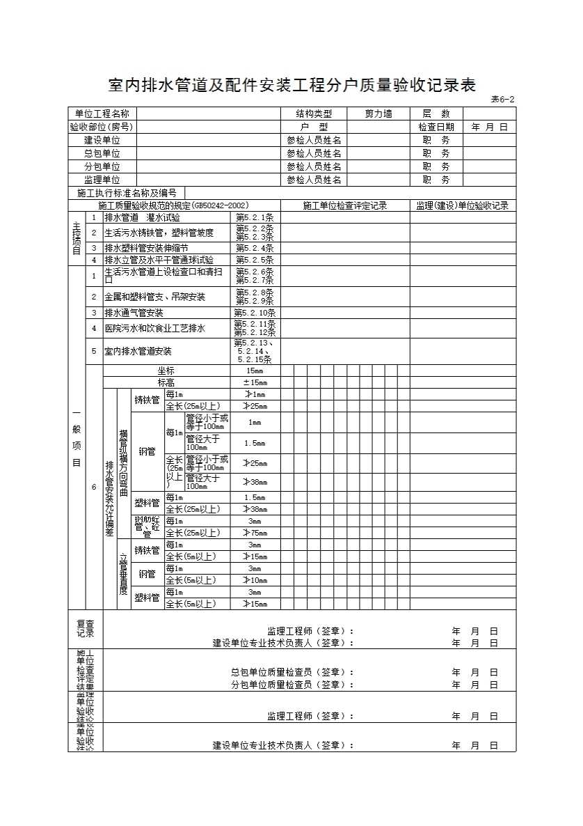 表格名称:6-2室内排水管道及配件安装工程分户质量验收记录表