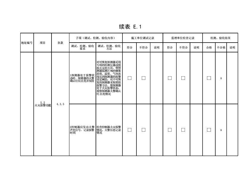 表格名称:表E.1 火灾报警控制器、消防联动控制器、火灾报警控制器(联动型)及其现场配接部件调试、检测、验收记录(续表32)