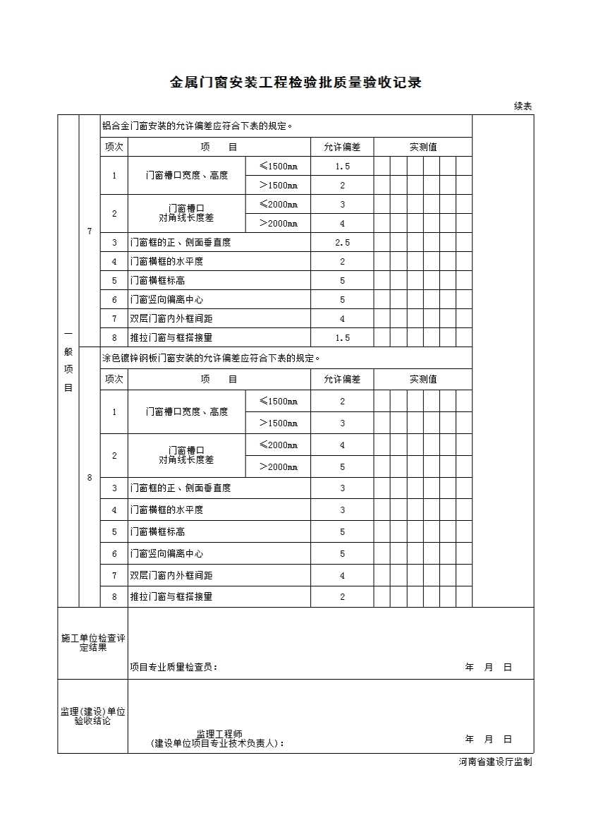 10-3-09-1(续)_金属门窗安装工程检验批质量验收记录续表