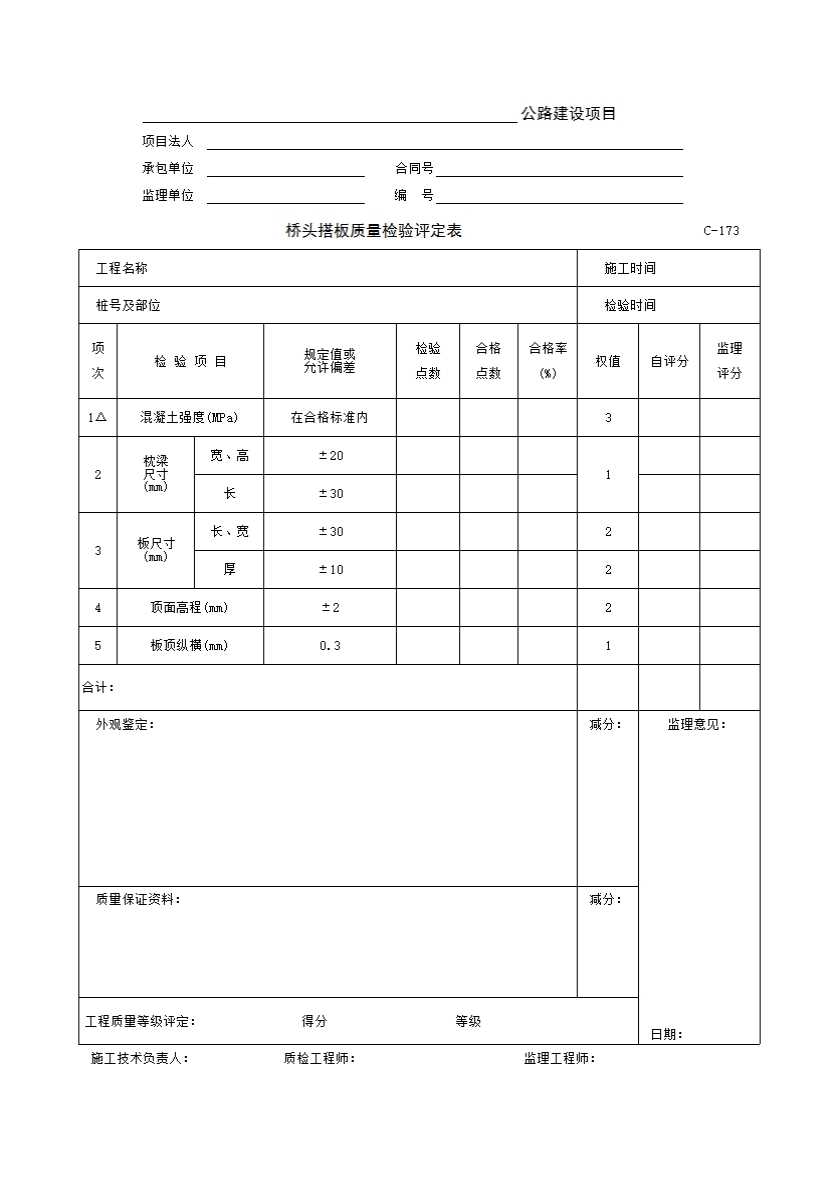 C-173 桥头搭板质量检验评定表