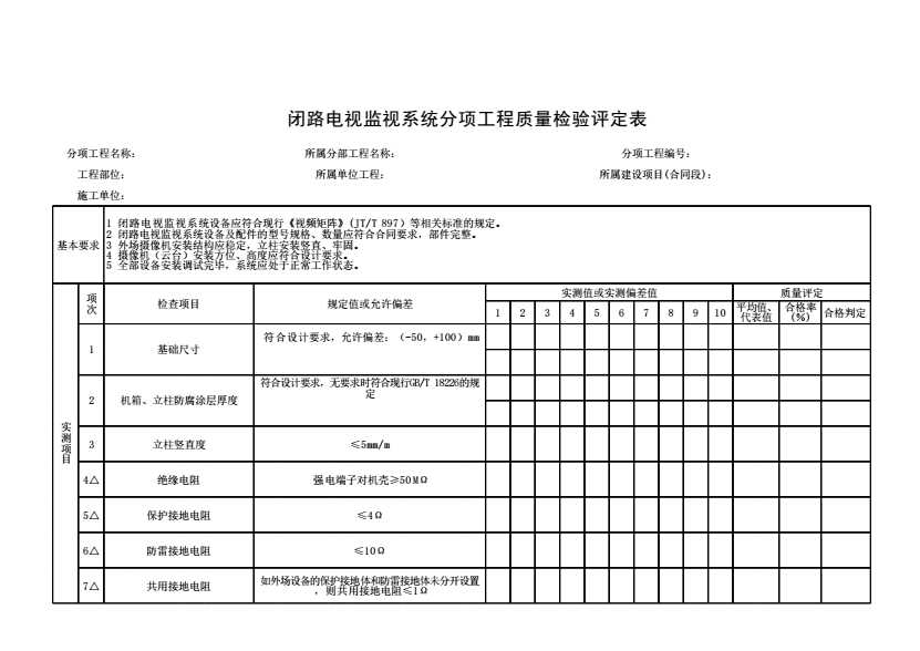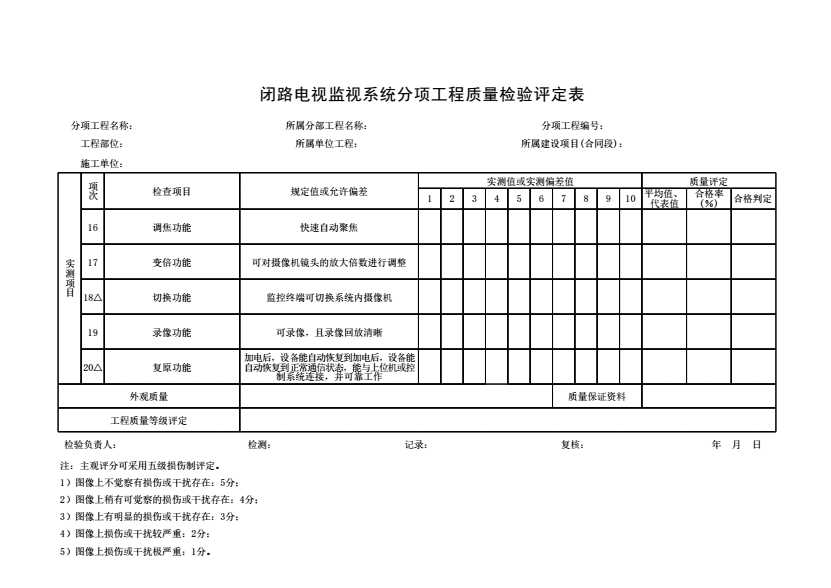 表9.2.2 闭路电视监视系统分项工程质量检验评定表