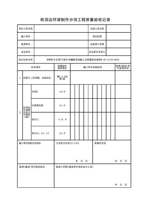 表格名称:柜顶边环梁制作分项工程质量验收记录