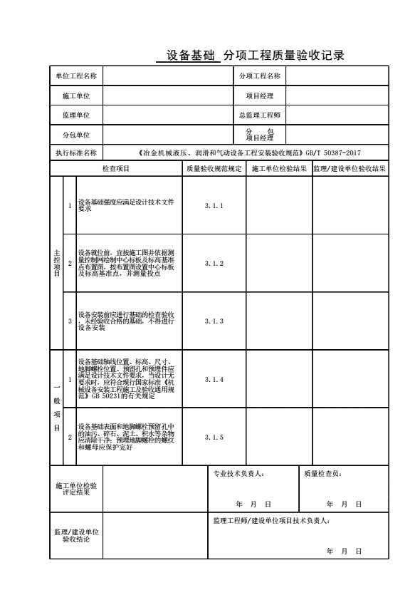 表格名称:设备基础分项工程质量验收记录