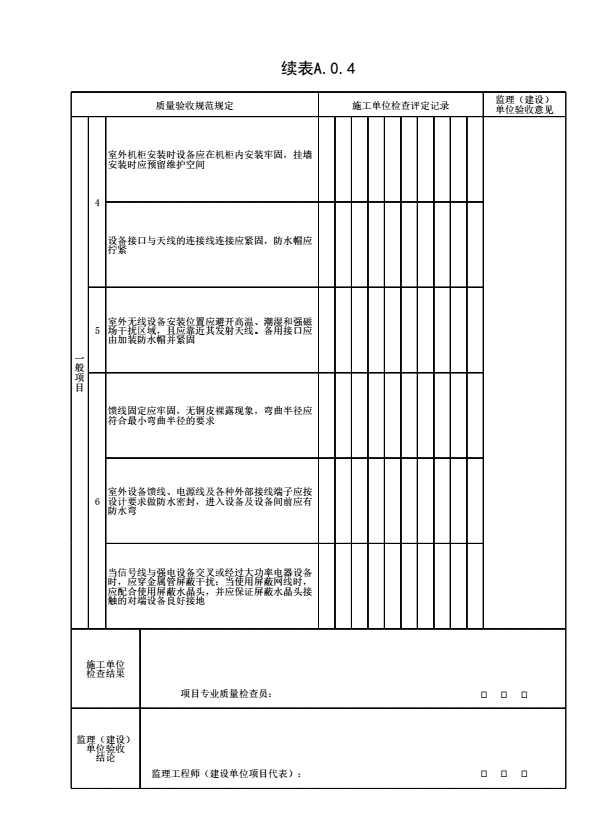表格名称:表A.0.4 无线通信室外设备安装检验批质量验收记录