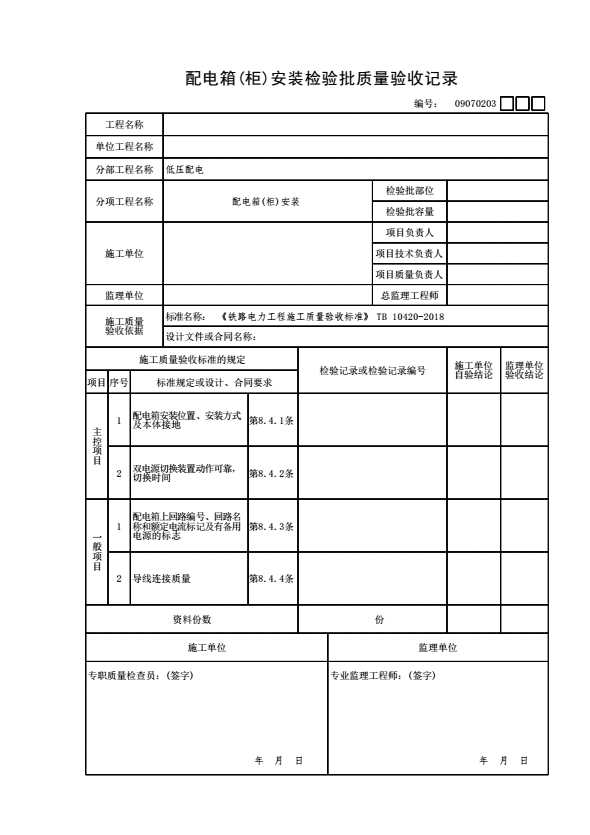 表格名称:09070203 配电箱(柜)安装检验批质量验收记录