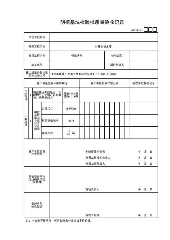 表格名称:02011101 明挖基坑检验批质量验收记录
