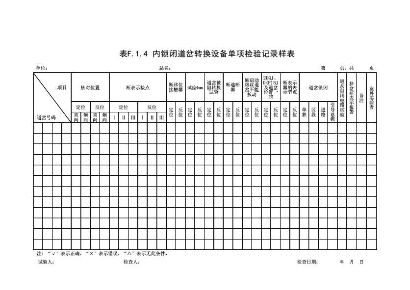 表格名称:表F.1.4 内锁闭道岔转换设备单项检验记录样表