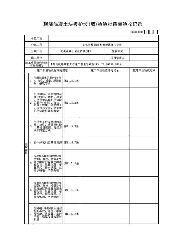 表格名称:G02014201 现浇混凝土块板护坡(墙)检验批质量验收记录