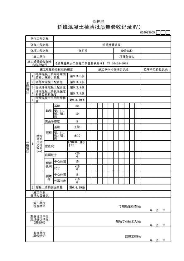 表格名称:G03013605 【保护层】纤维混凝土检验批质量验收记录(Ⅳ)