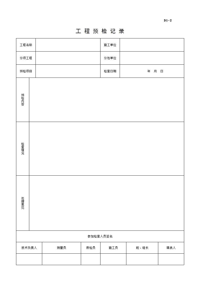 表格名称:工程预检记录