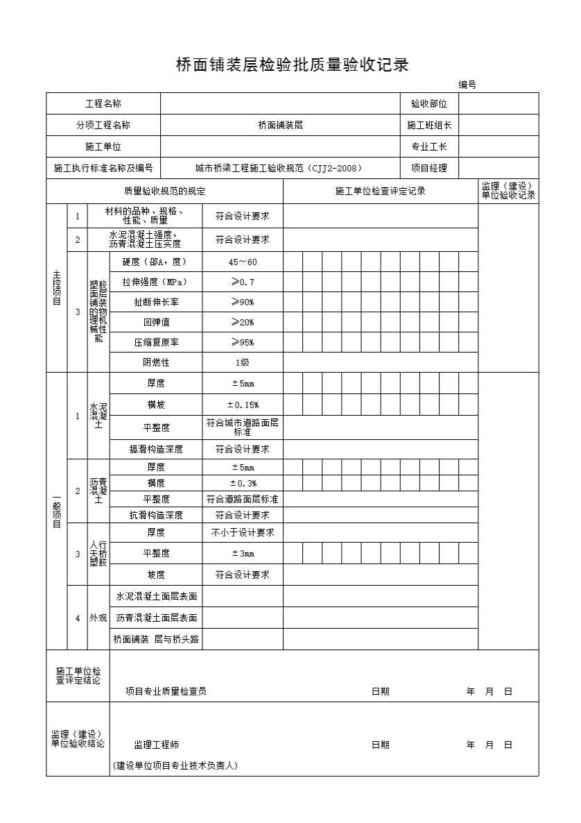 城市桥梁工程施工质量验收表格(CJJ2-2008)