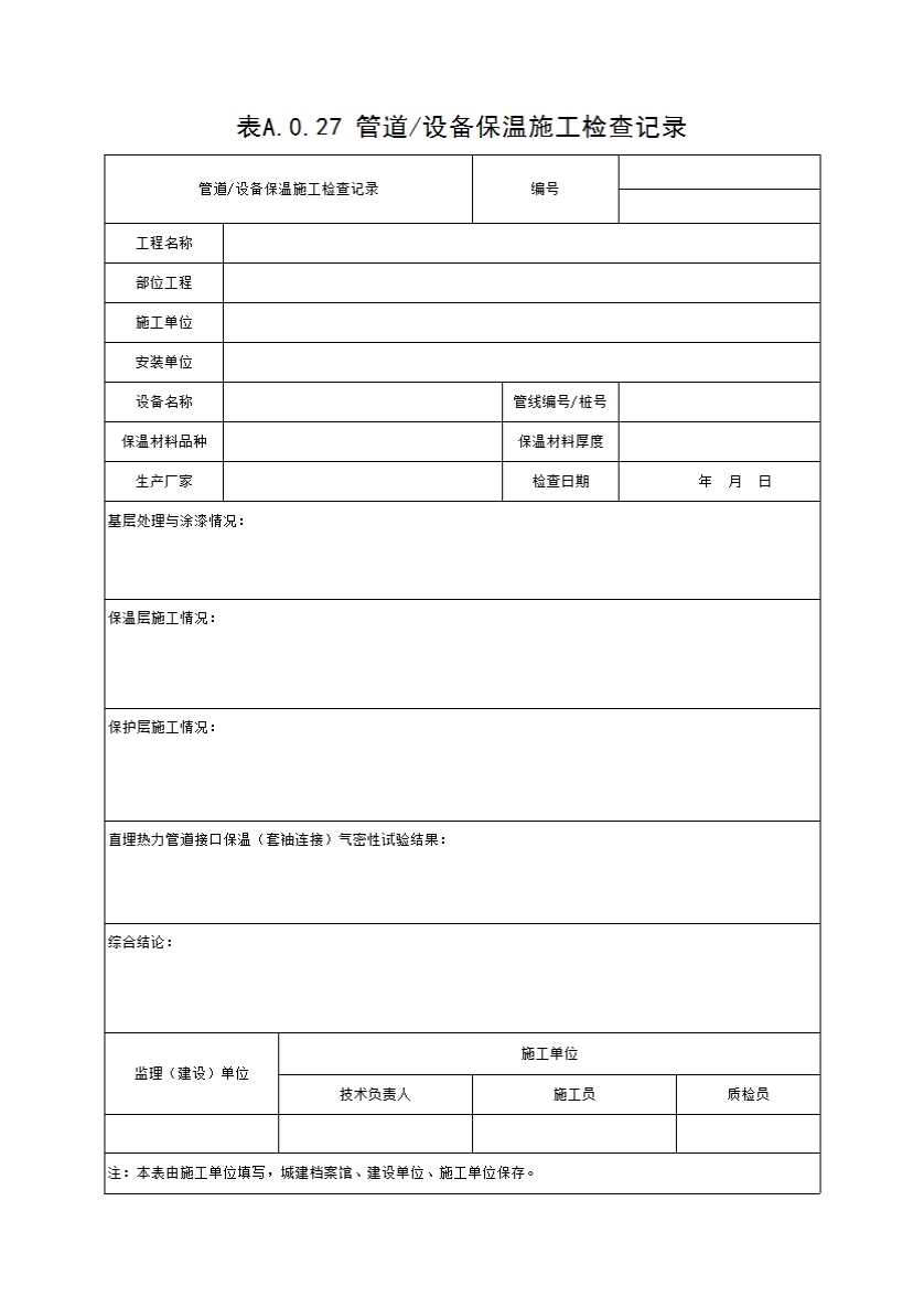 表格名称:表A.0.27 管道/设备保温施工检查记录