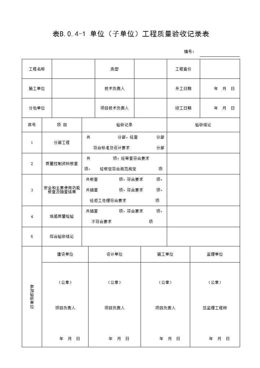 表B.0.4-1 单位(子单位)工程质量验收记录表