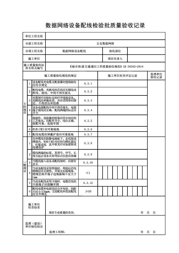 表格名称:数据网络设备配线检验批质量验收记录.