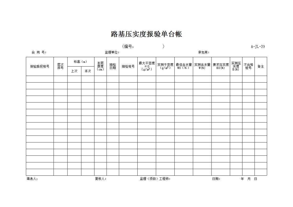 表格名称:048 A-JL-39 路基压实度报验单台帐