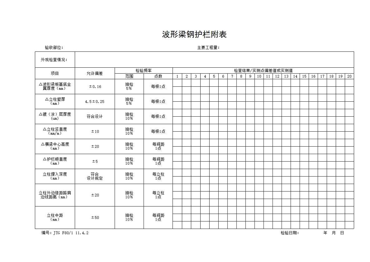 表格名称:JTG F80/1 11.4.2 (波形梁钢护栏)检验批质量验收记录