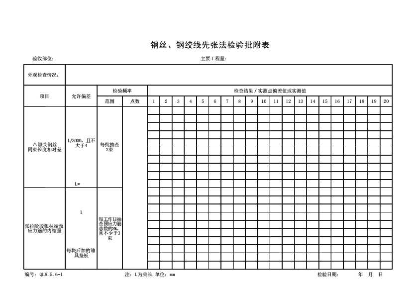 表格名称:(钢丝、钢绞线先张法)检验批质量验收记录
