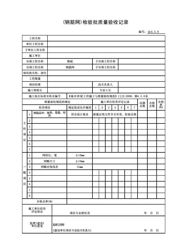 河南省市政工程施工质量技术用表2017最新(参考用表)