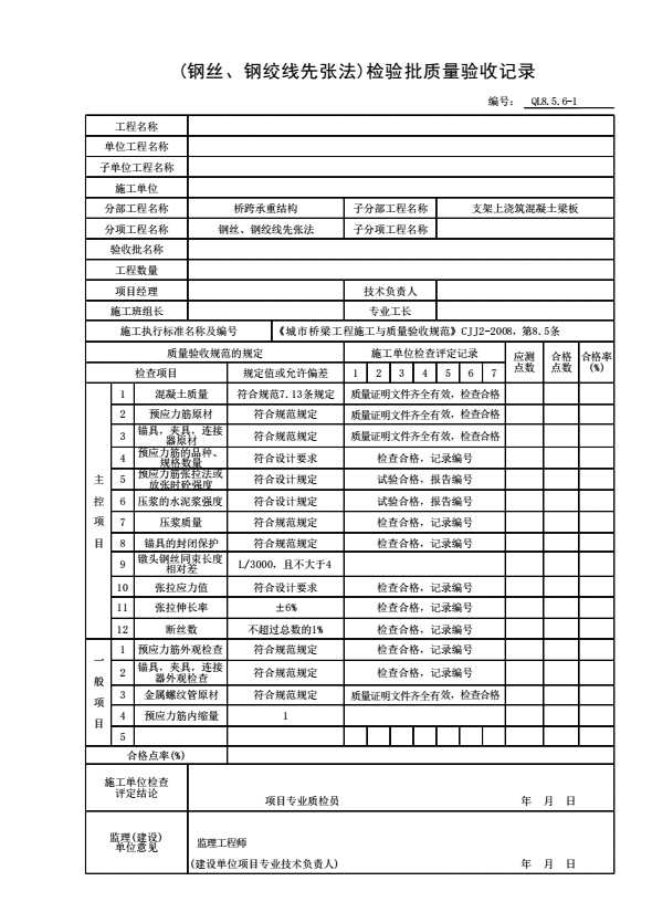 (钢丝、钢绞线先张法)检验批质量验收记录