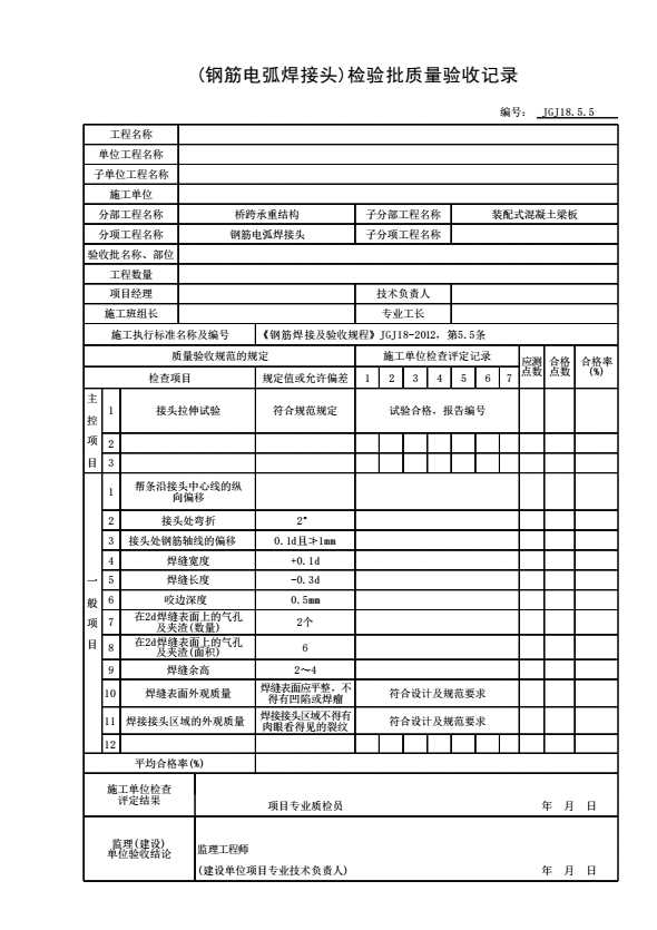 表格名称:(钢筋电弧焊接头)检验批质量验收记录