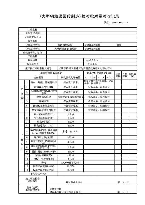 表格名称:(大型钢箱梁梁段制造)检验批质量验收记录