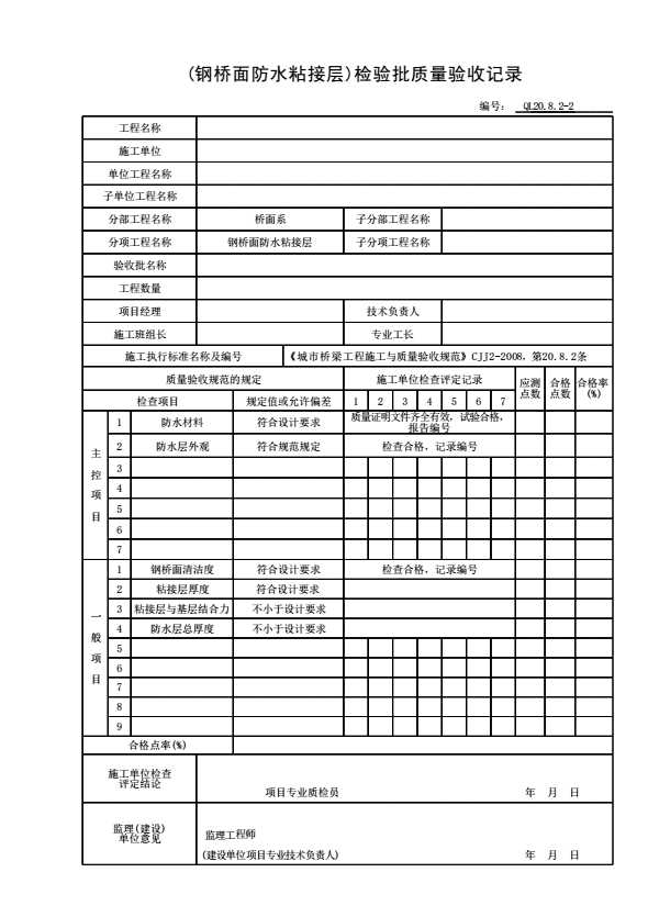 表格名称:(钢桥面防水粘接层)检验批质量验收记录