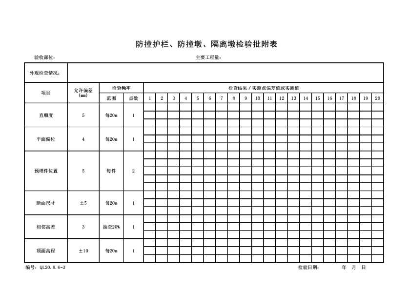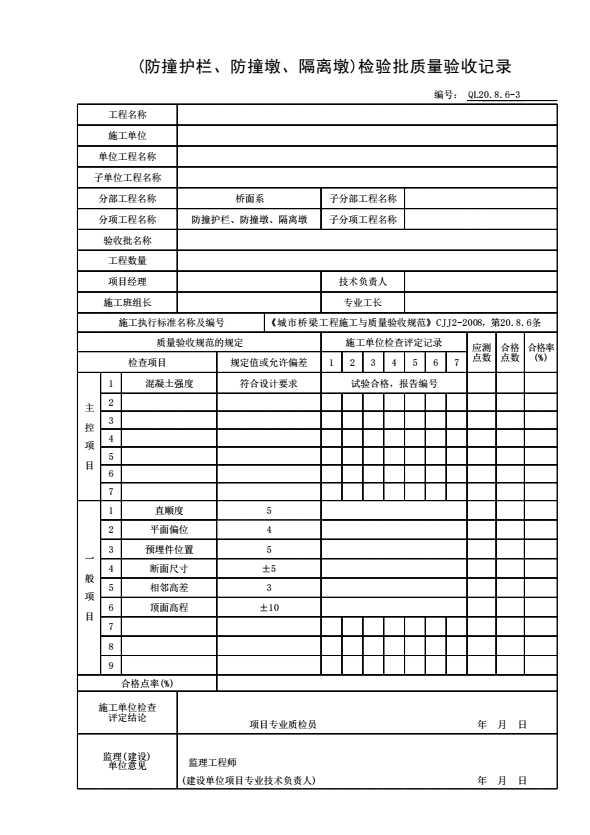 表格名称:(防撞护栏、防撞墩、隔离墩)检验批质量验收记录