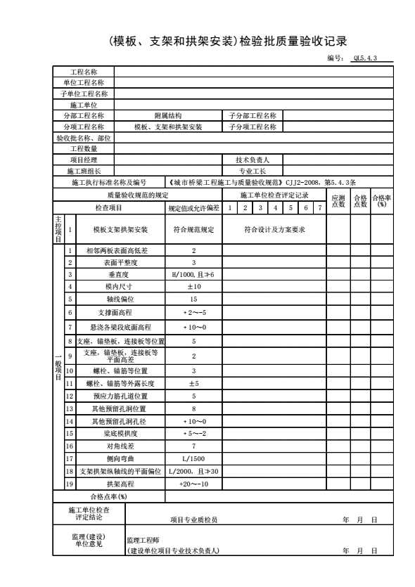 表格名称:(模板、支架和拱架安装)检验批质量验收记录