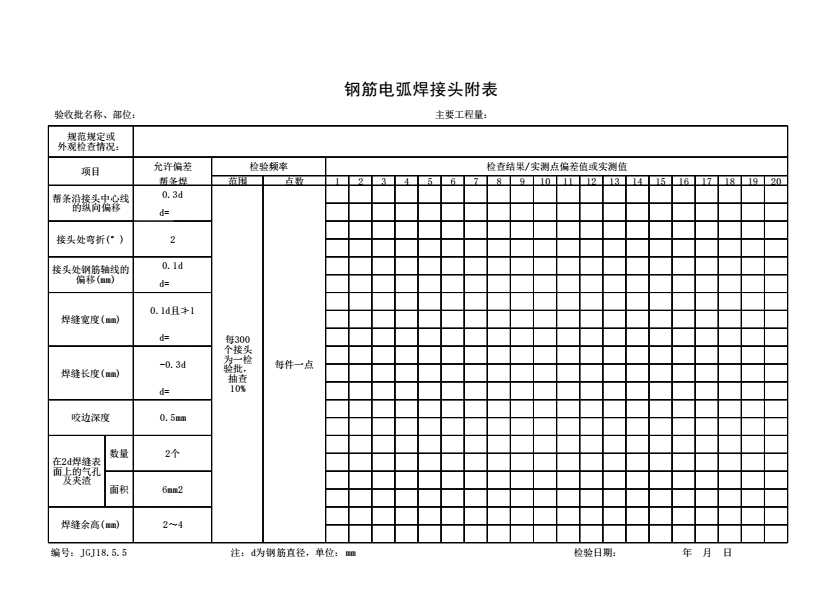表格名称:(钢筋电弧焊接头)检验批质量验收记录
