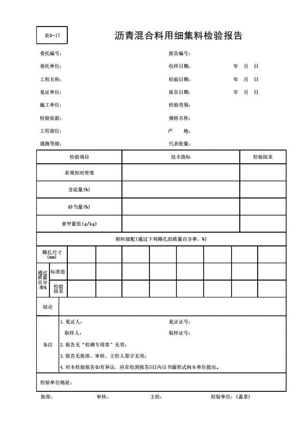 表格名称:表B-17 沥青混合料用细集料检验报告