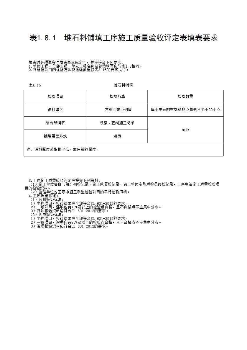 表1.8.1  堆石料铺填工序施工质量验收评定表填表要求