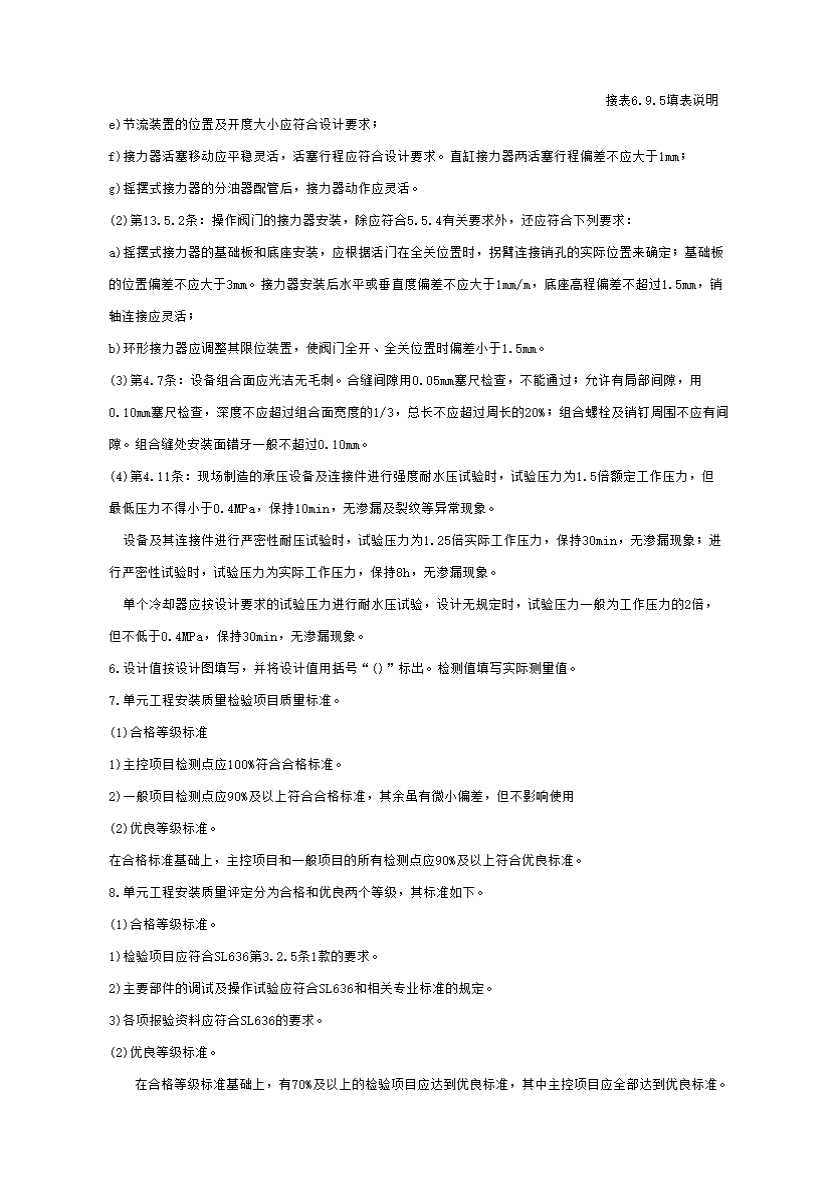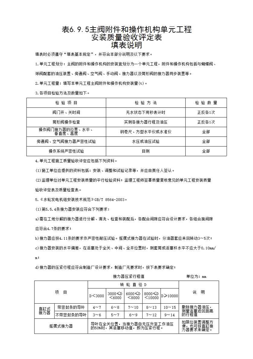 表格名称:表6.9.5 主阀附件和操作机构单元工程安装质量验收评定表