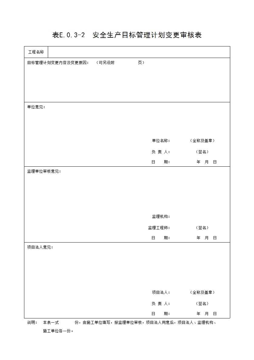 表格名称:表E.0.3-2 安全生产目标管理计划变更审核表