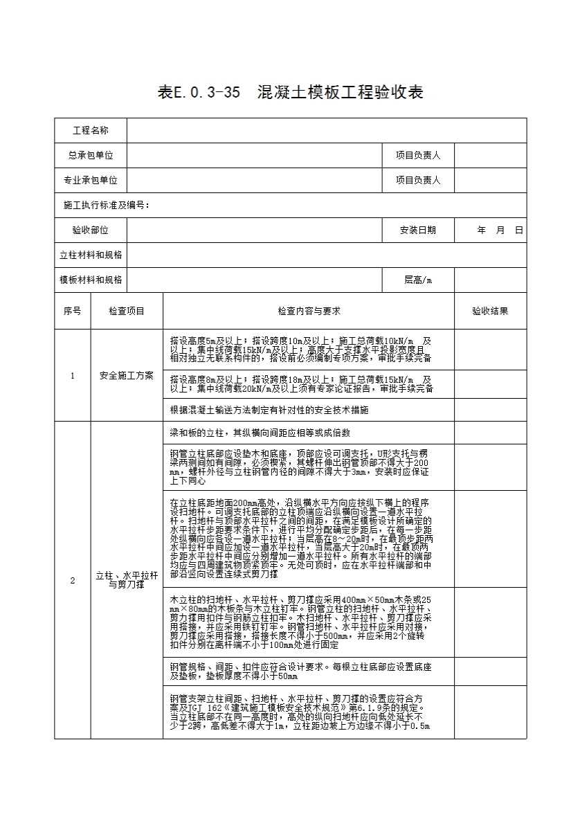 表格名称:表E.0.3-35 混凝土模板工程验收表