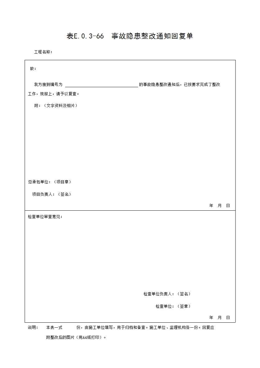表E.0.3-66 事故隐患整改通知回复单