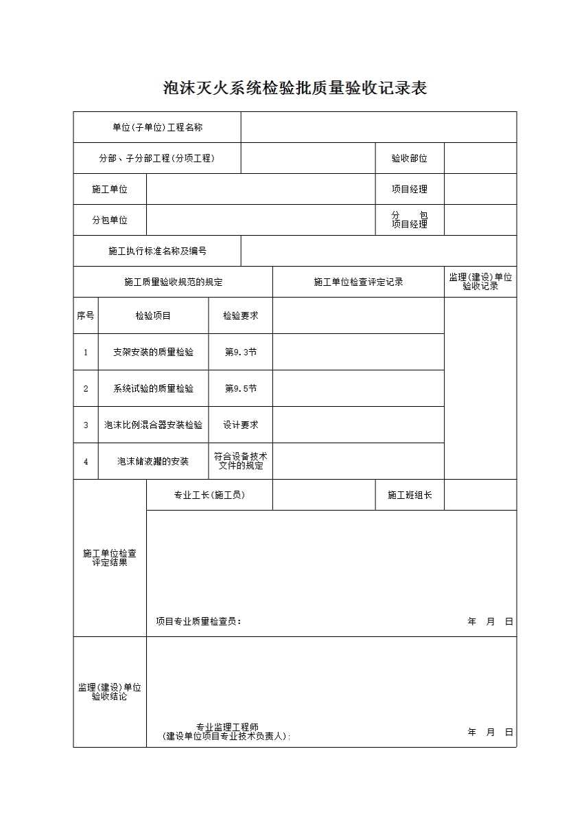 表格名称:泡沫灭火系统检验批质量验收记录表