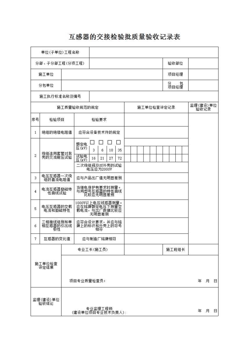 12.5.1互感器的交接试验应符合表12.5.1的规定。