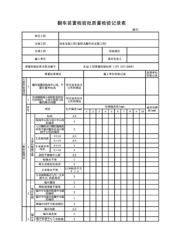 表格名称:翻车装置检验批质量检验记录表