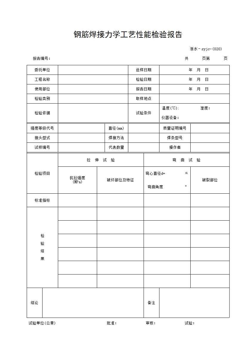 表格名称:020 钢筋焊接力学工艺性能检验报告