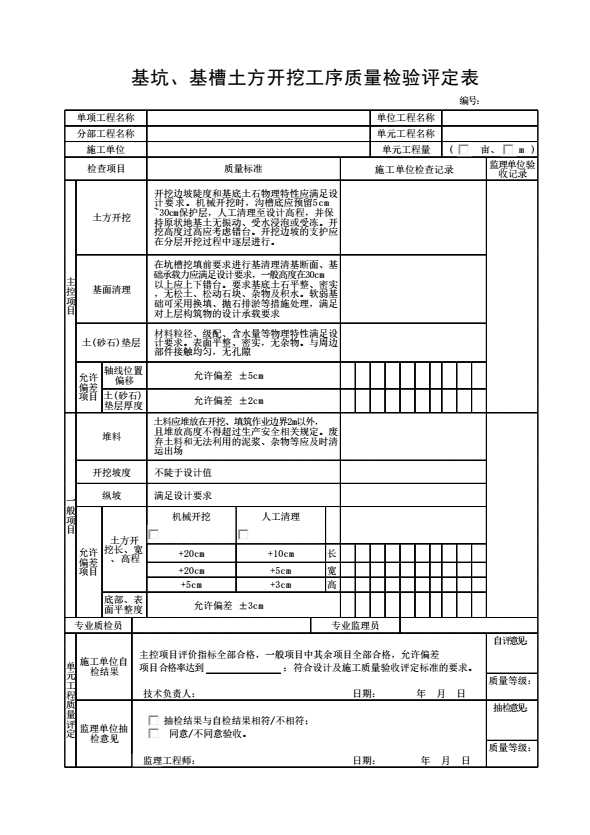 基坑、基槽土方开挖工序质量检验评定表