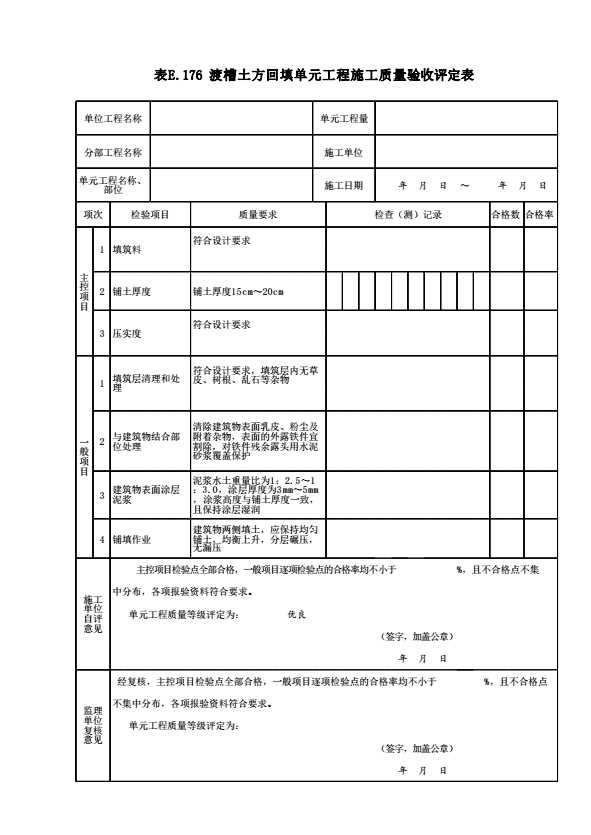 表格名称:表E.175、表E.176 渡槽土方回填单元工程施工质量验收评定表及报验单