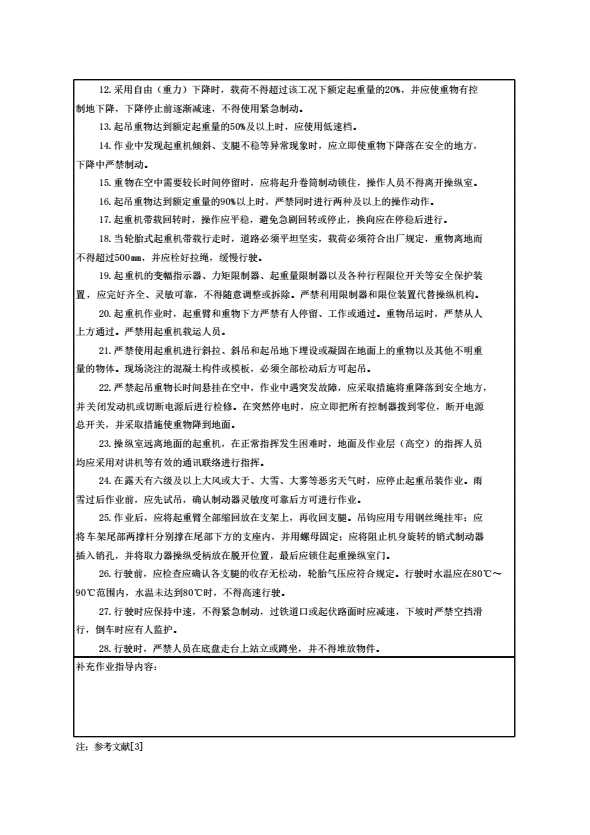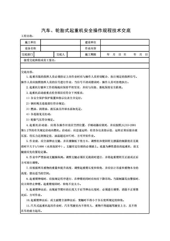 表格名称:汽车、轮胎式起重机安全操作规程技术交底