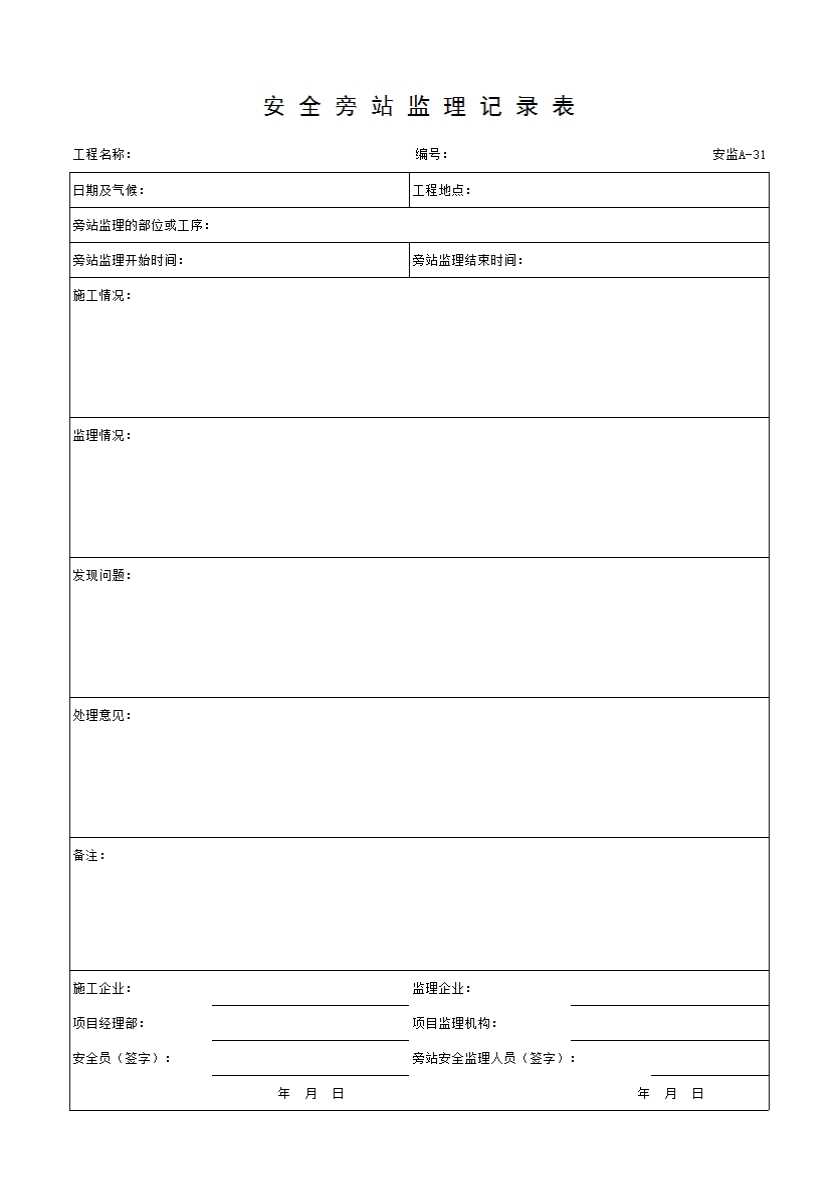 安监A-31 安全旁站监理记录表
