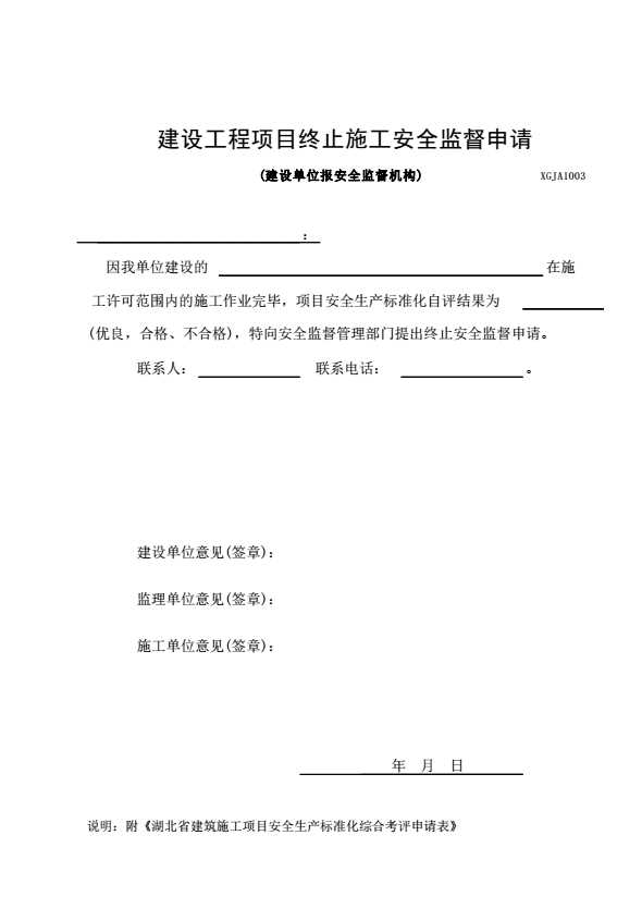 表格名称:XGJA1003 建设工程项目终止施工安全监督申请