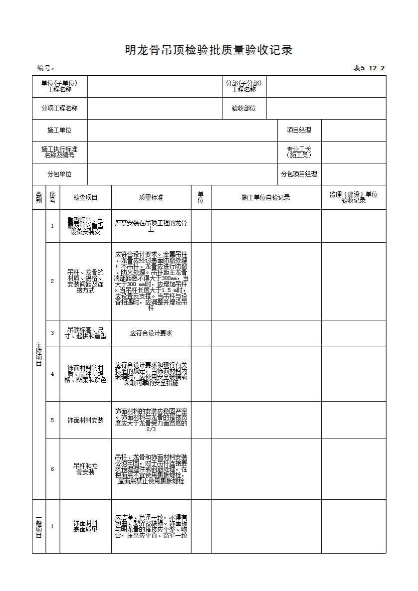 表格名称:5.12.2 明龙骨吊顶检验批质量验收记录
