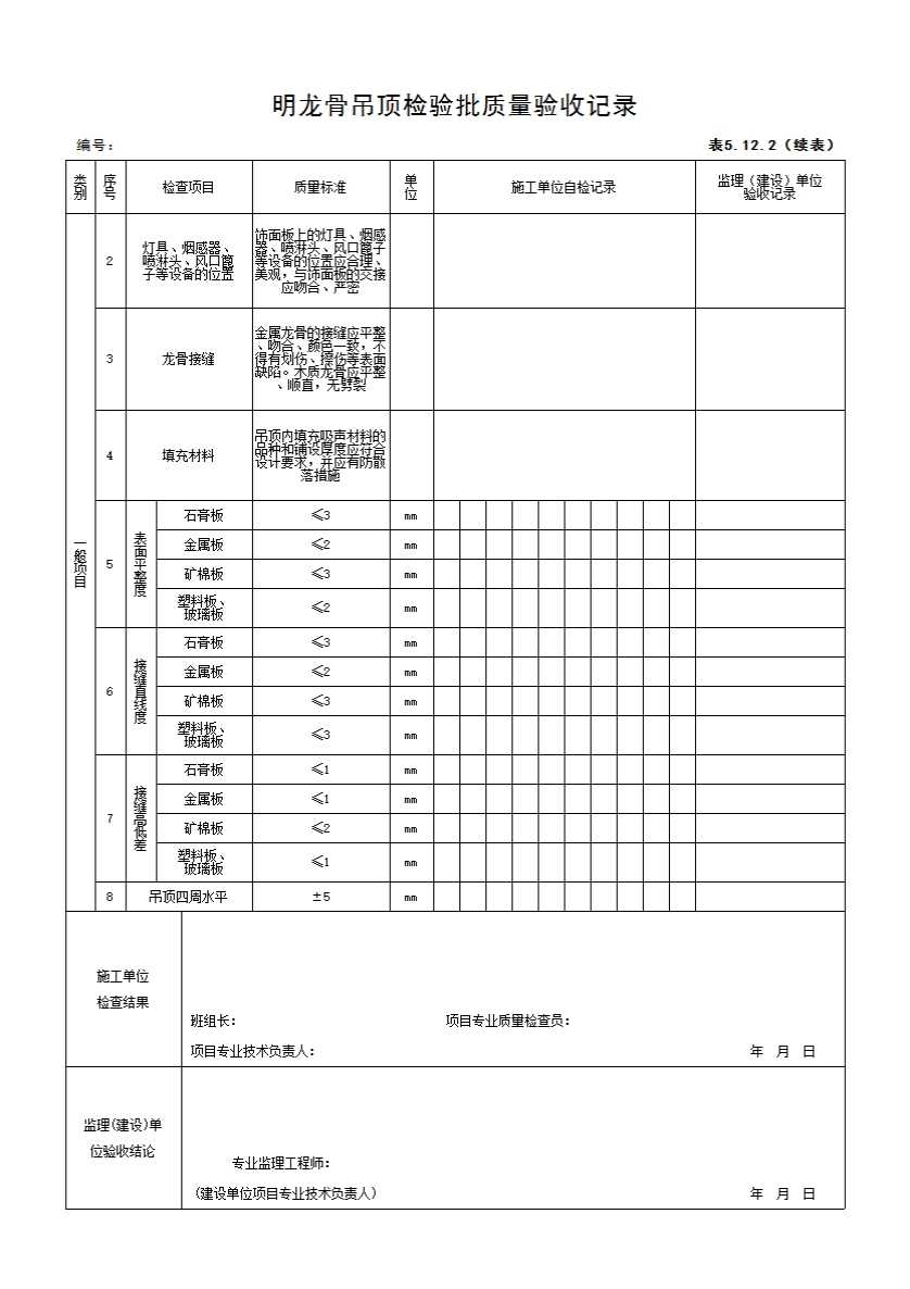 5.12.2 明龙骨吊顶检验批质量验收记录
