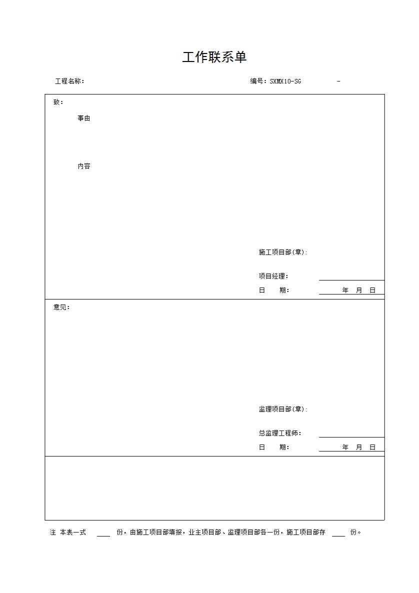 表格名称:工作联系单
