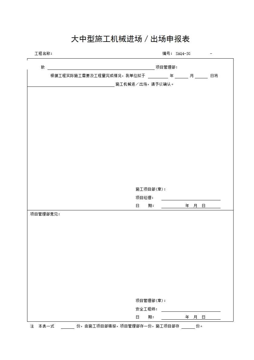 表格名称:SAQ4 大中型施工机械进场/出场申报表